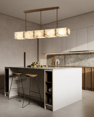 Home Vintage Alabaster & Gold Long Chandelier 48“60”71" with Metal Rod