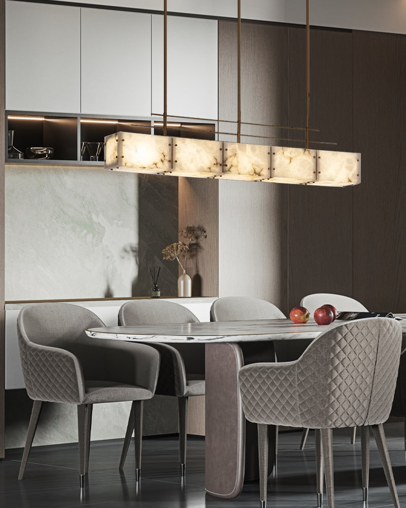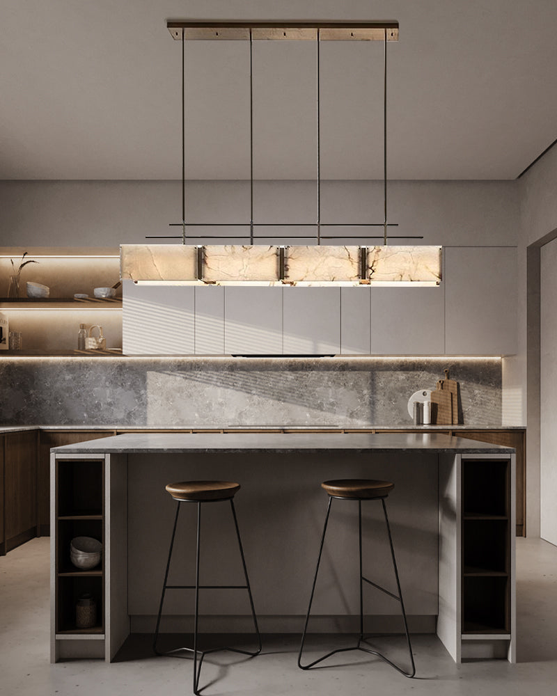 • Alabaster & Gold: Premium stone + gold accents radiate opulent warmth.