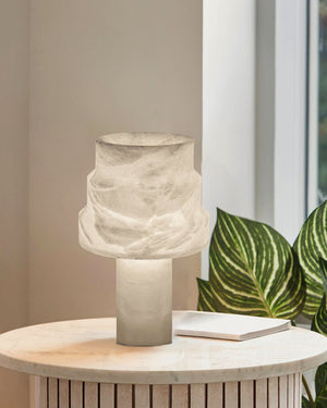White Nature Handcrafted Alabaster Small Table Lamp with night light for bedside