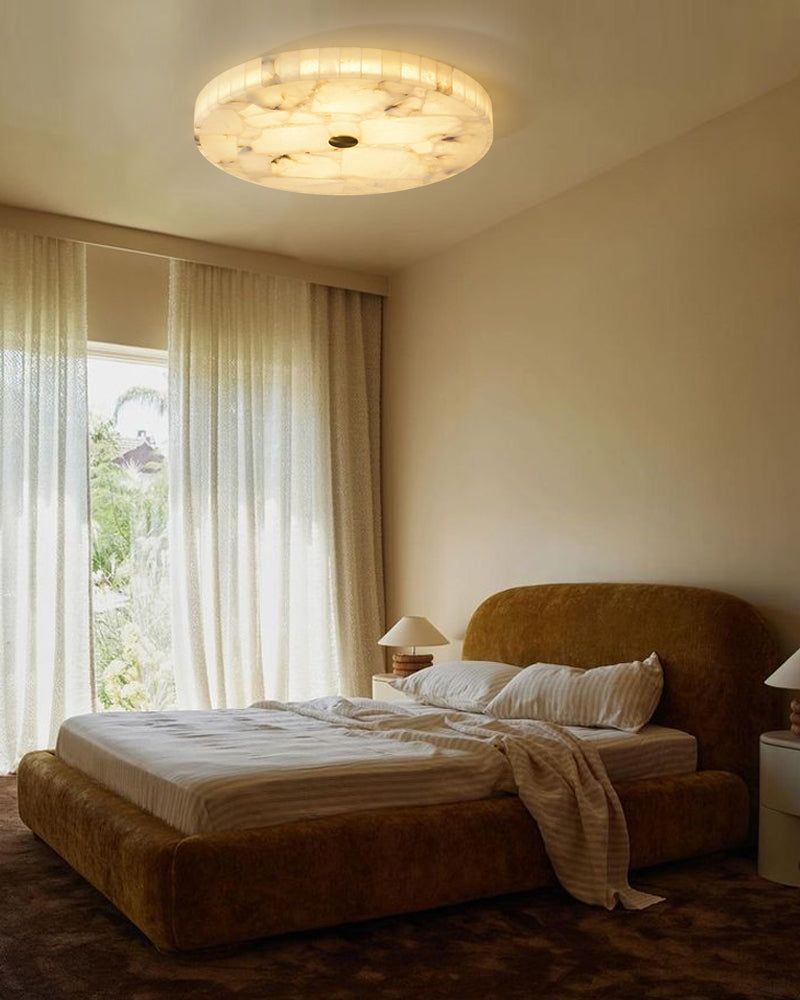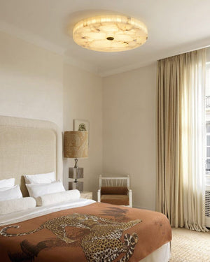 White Spanish Round Alabaster Flush Mount Ceiling Light for bedroom