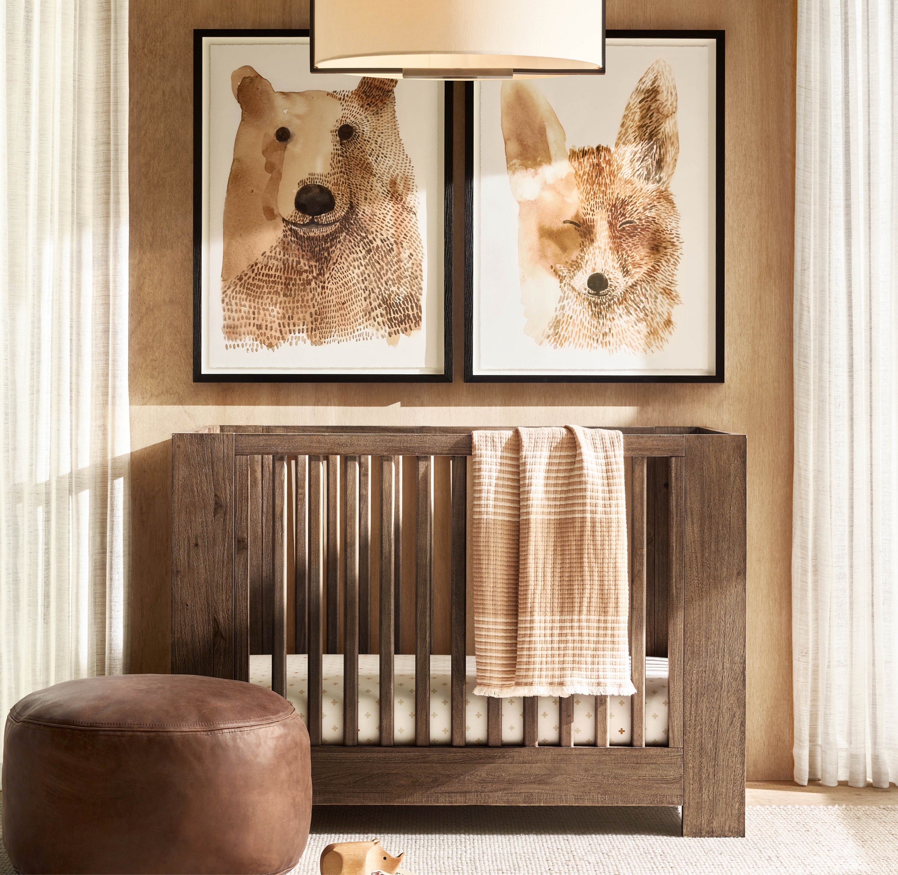 - Fitted with a white linen shade