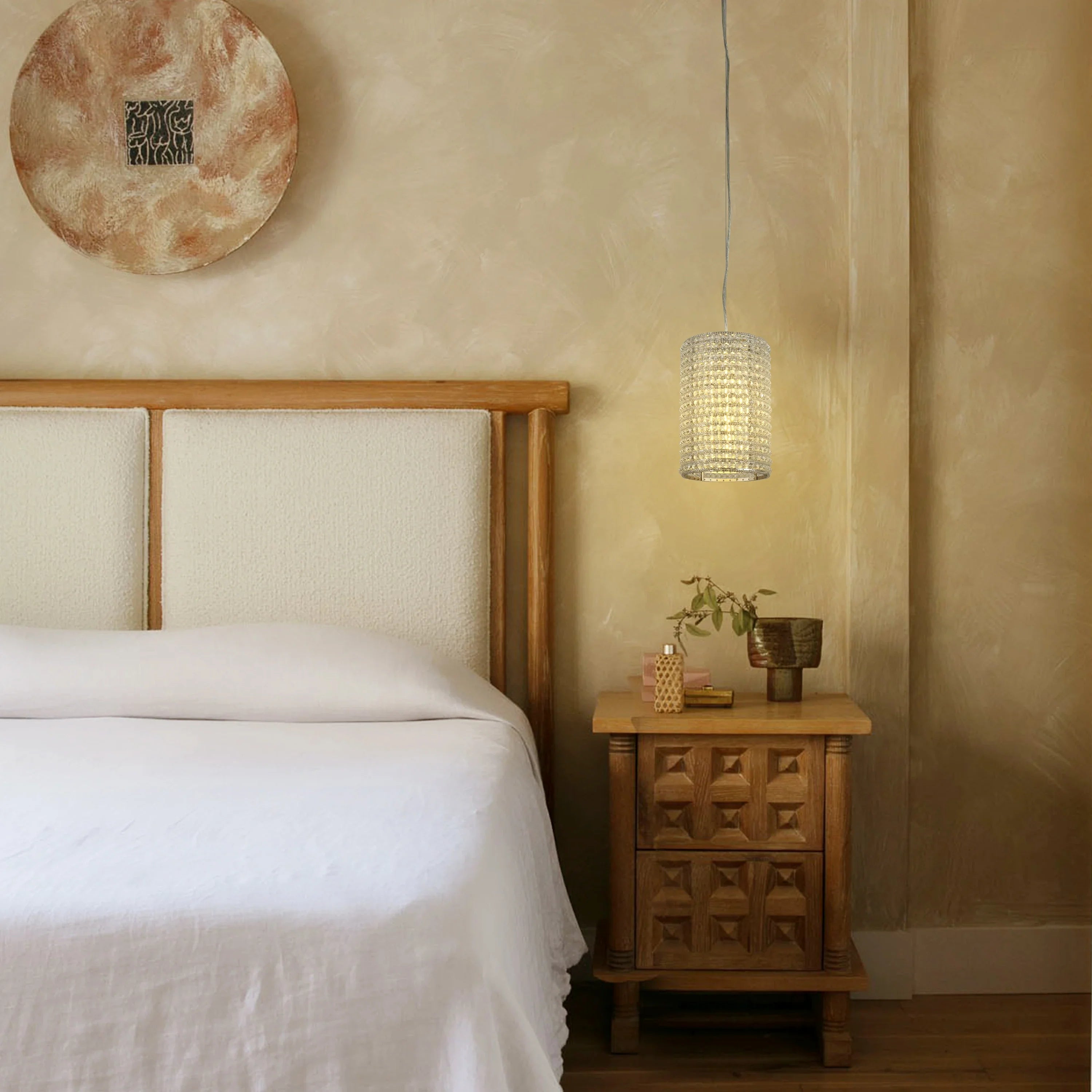 The Stellar Beads Pendant features strands of faceted beads in smoke or clear crystal, arranged in a sleek, cylindrical silhouette. The design captures and reflects light beautifully, creating a mesmerizing, ambient glow. Its 12‑inch size makes it perfect for grouping over kitchen islands, dining tables, or in living areas. Each pendant exudes refined glamour and sophisticated sparkle.