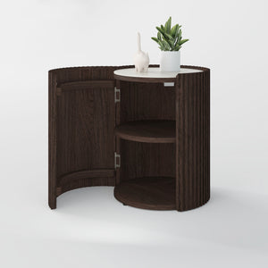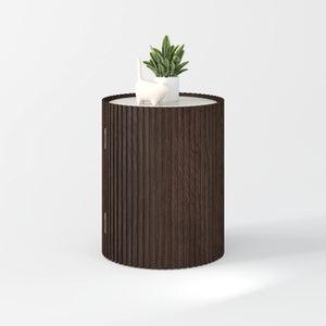 Dark Walnut Fluted Round Sintered Stone Side Table 16"W