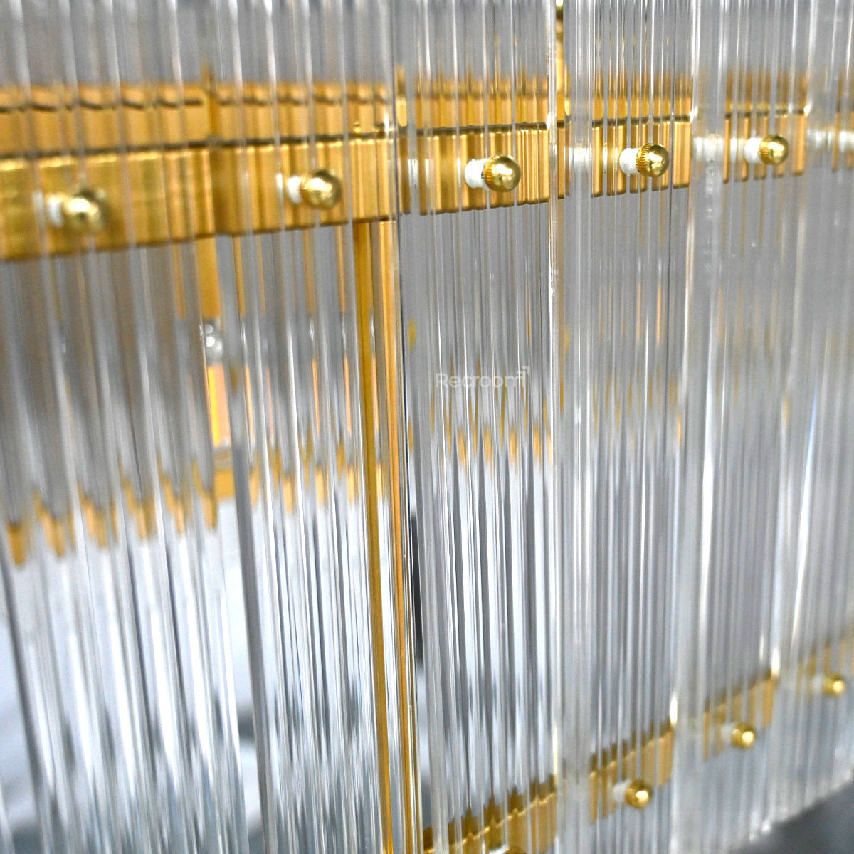 Our San Marcon Collection evokes the glamour of 1960s Italian glass lighting. Arranged within a sleek metal frame, dozens of glass panes are raked by hand to create a fluted texture, producing a dramatic play of light and a softly diffused glow.