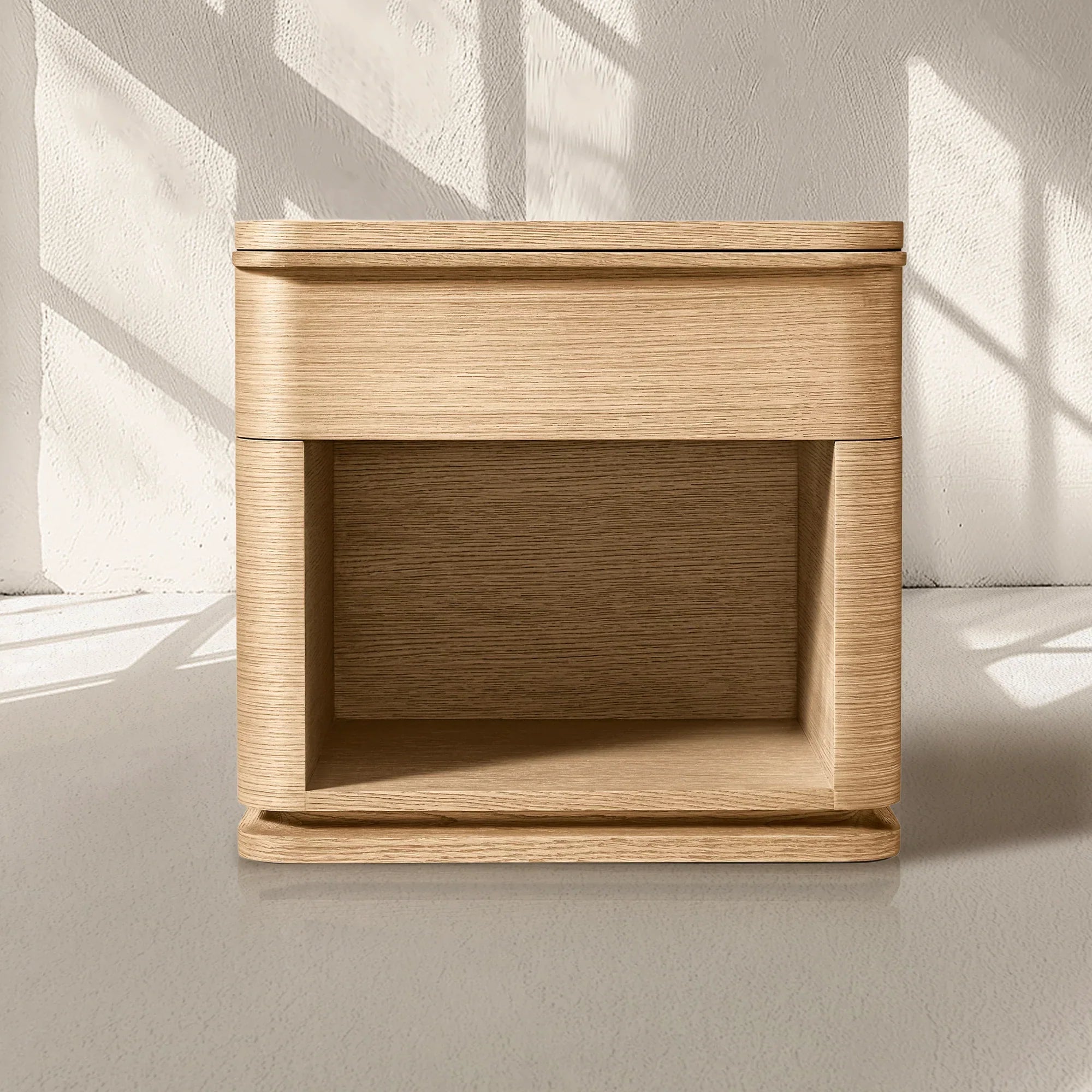 Linet is expertly crafted from American white oak, showcasing its rich grain through a brushed finish. A slender plinth enhances its refined architectural profile, adding a subtle touch of elegance.