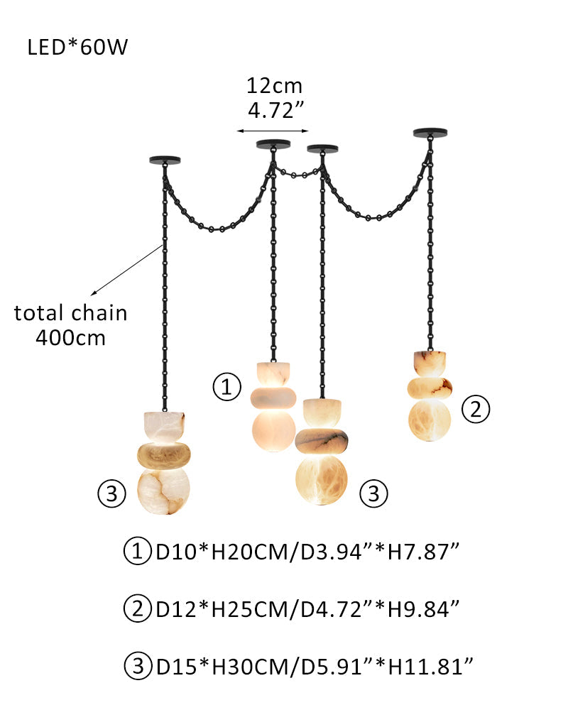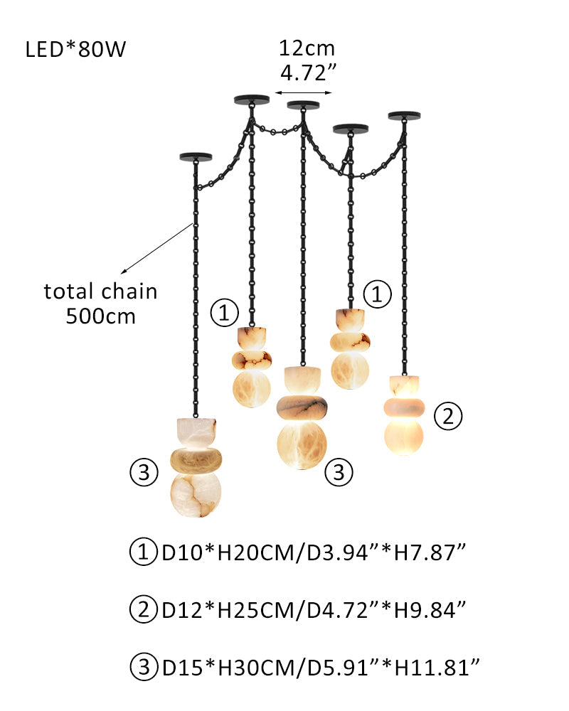 7 lights 6" Wide Multi Light LED Pendant Light Fixtures white alabaster indoor lighting