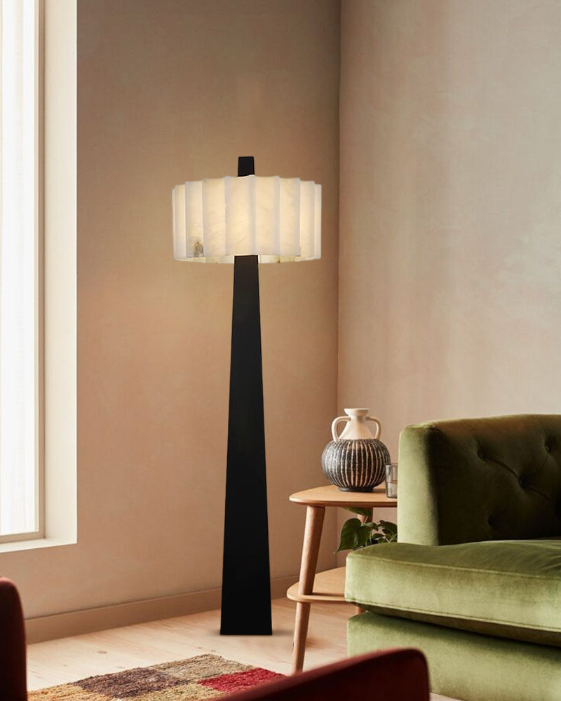 Home Artisanal Craftsmanship Alabaster Floor Lamp 65" Height | Black Stainless Base