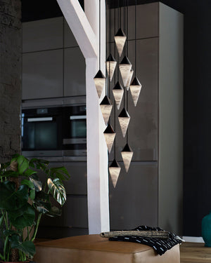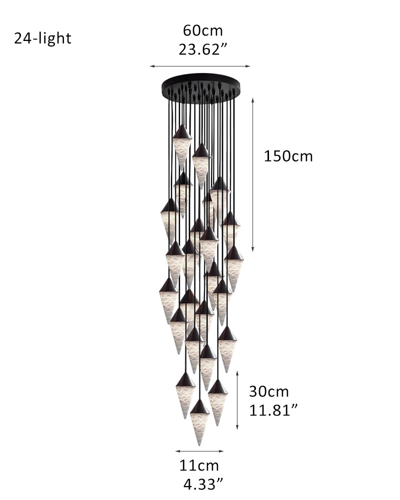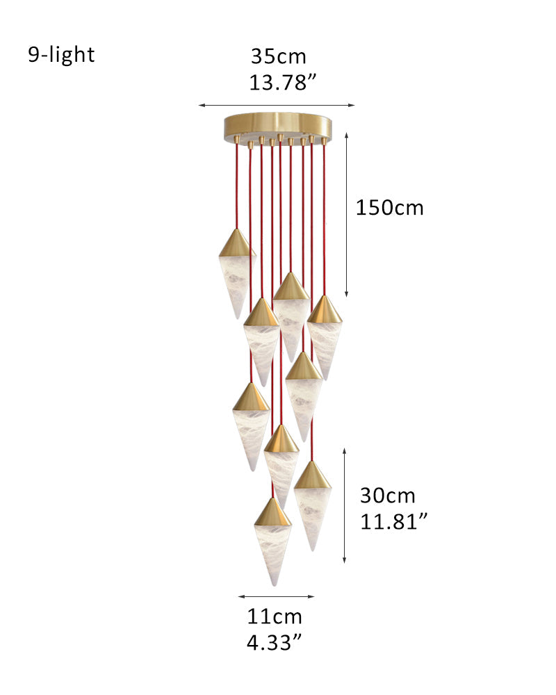 Classic Conical Cluster Alabaster Dome Ceiling Brass&Black Pendant Light