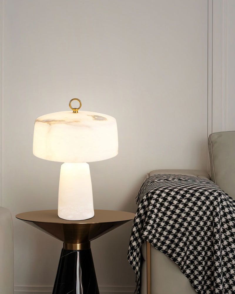 - Handcrafted Alabaster Shade: Unique natural veining, 30cm diameter.
