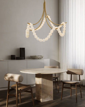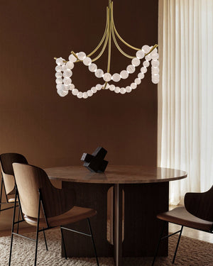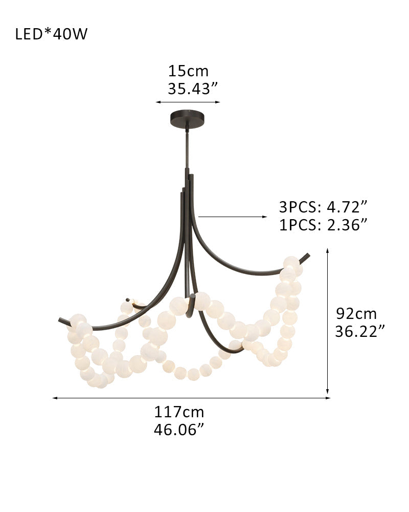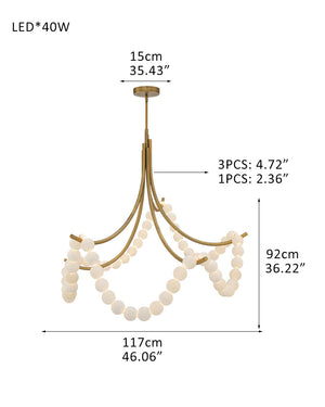 Cluster String Alabaster Beads Semi Flush Chandelier in Brass & Black Metal Rod