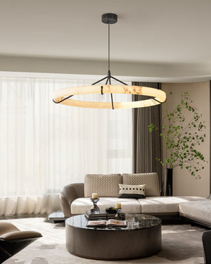 Dia 31.5" Black Metal Modern Single Ring Alabaster Pendant Light,60W