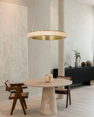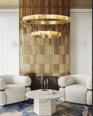 - Integrated LEDs highlight alabaster’s organic striations for warm, layered light.