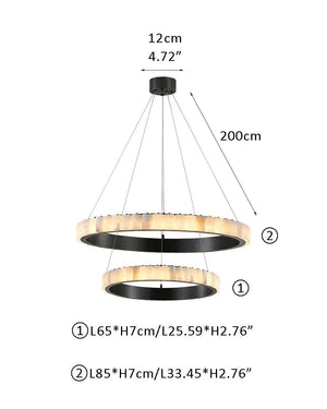 Dia 65+85CM Double LED Ring Marble Chandeliers | Black/Gold Ceiling Steel