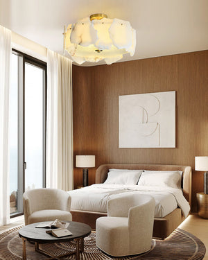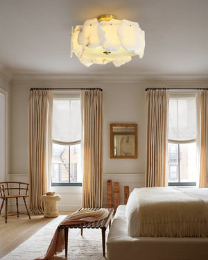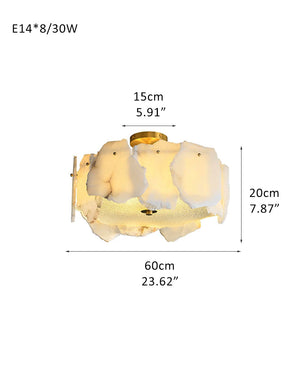 Elegance Semi Flush Alabaster Round Ceiling Light Fixture in Brass