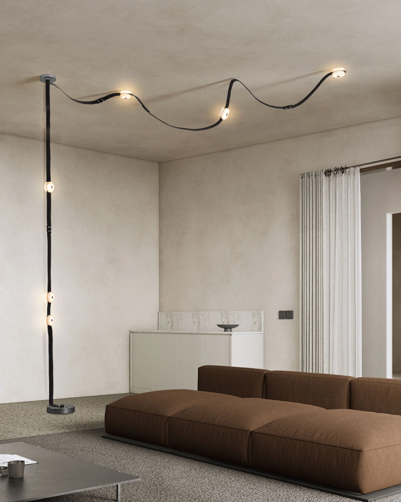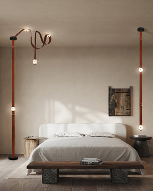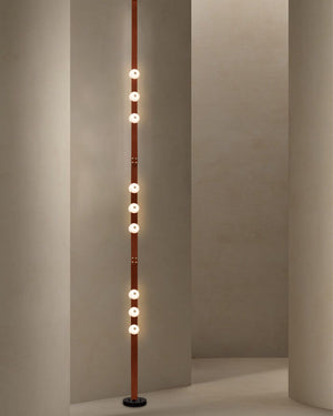 Hubbardton Forge Snaps Small LED Floor-to-Ceiling Light in Brown Leather Finished