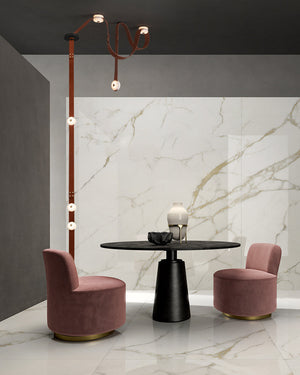 - Handcrafted white alabaster diffuses warm LED light, highlighting unique natural veins.