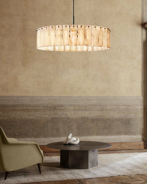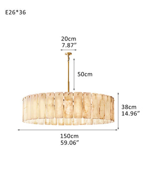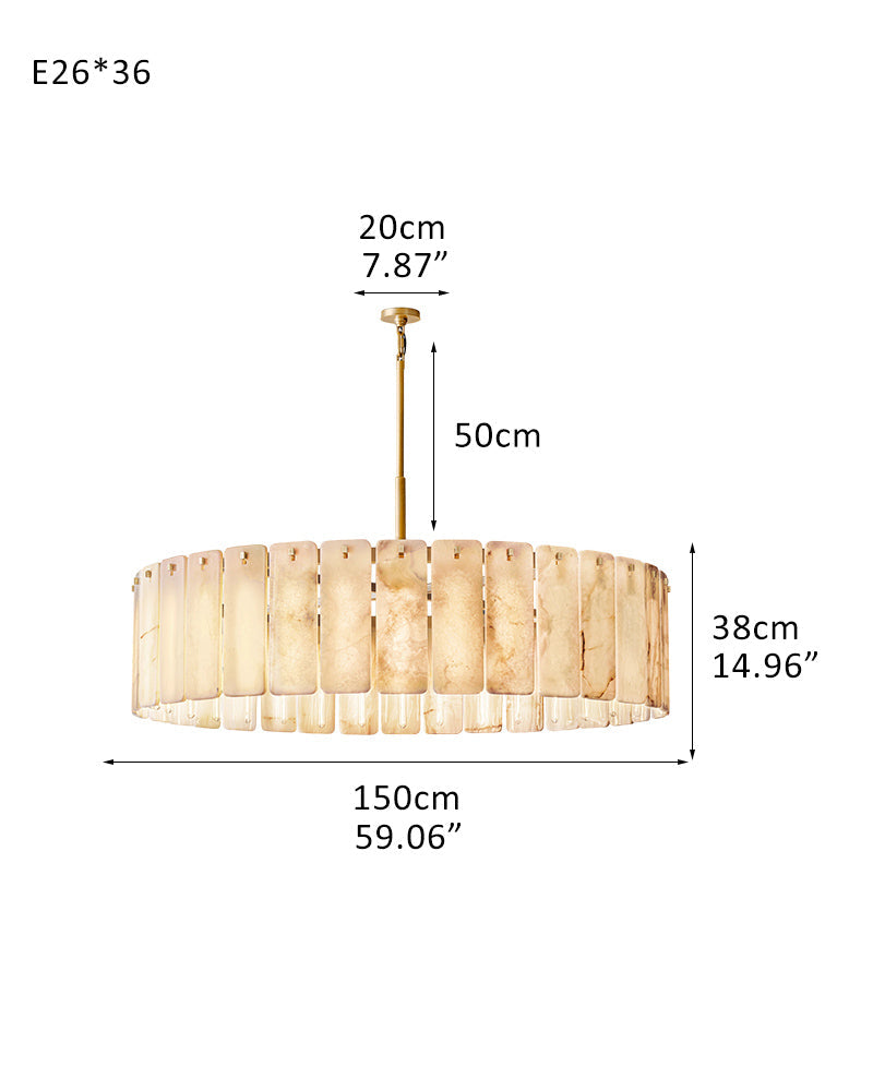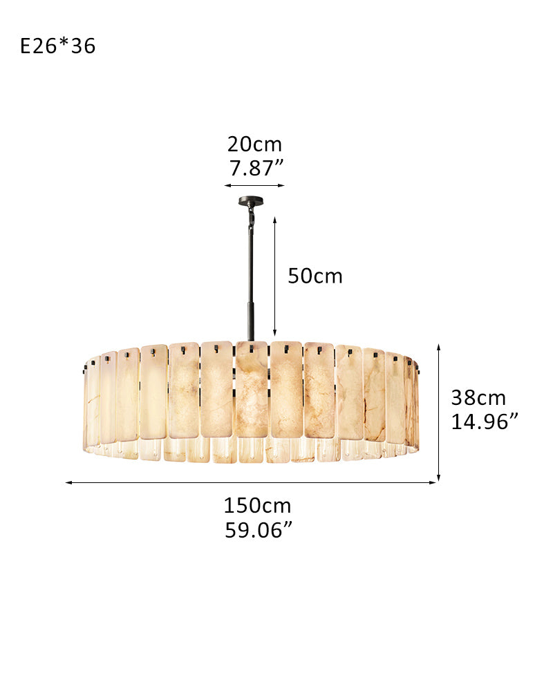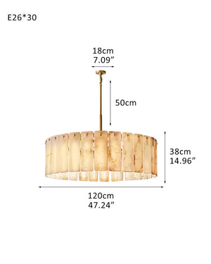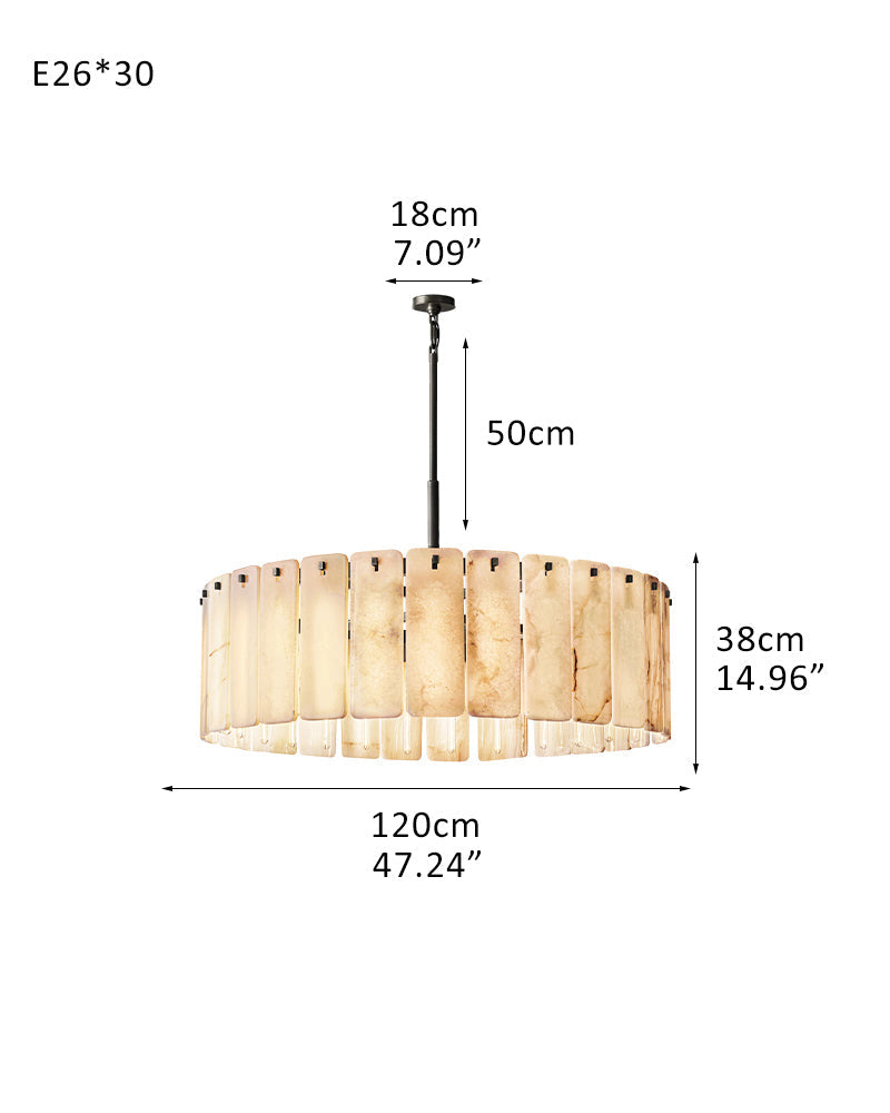Lacquered Burnished Brass/Black LED Round Calamette Alabaster Lighting Collection 36" 48" 60"