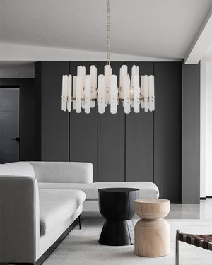Large Alabaster Rectangular Chandelier Wide 40“ 45” with Chrome Frame for dining room