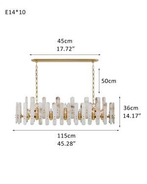 Home Large Alabaster Rectangular Chandelier Wide 40“ 45” with Chrome Frame for dining room
