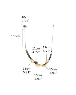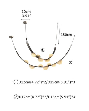 Leather pendant lamps with semicircular marble diffusers on a U-shaped strip metal base