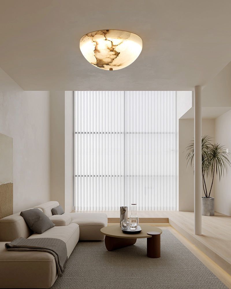 LED Alabaster Bedside ceiling wall sconces light fixture in Brass with Round Bowl shaped