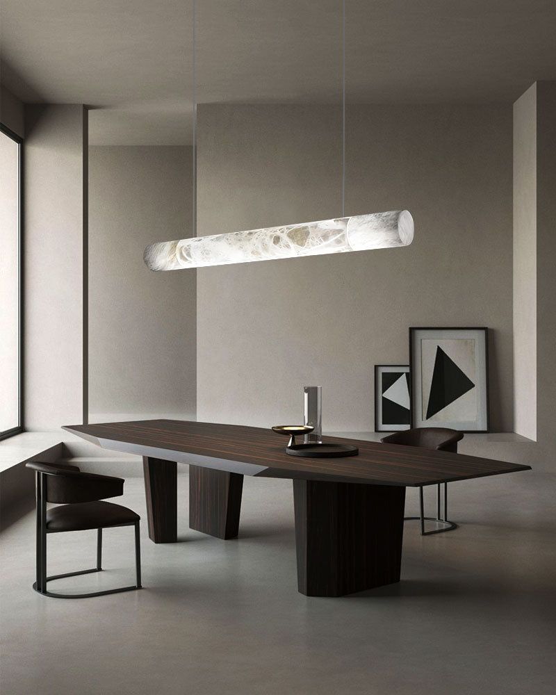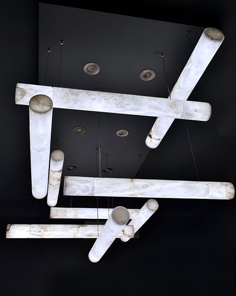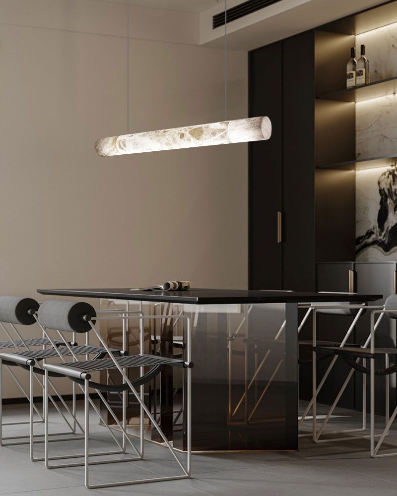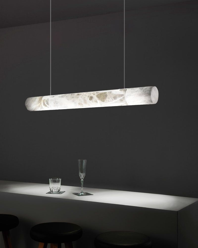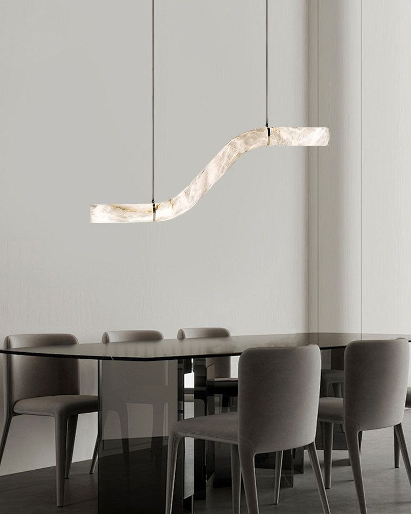 Home LED Linear Creative White Alabaster Liberty Hanging Light | Straight/Curved Design