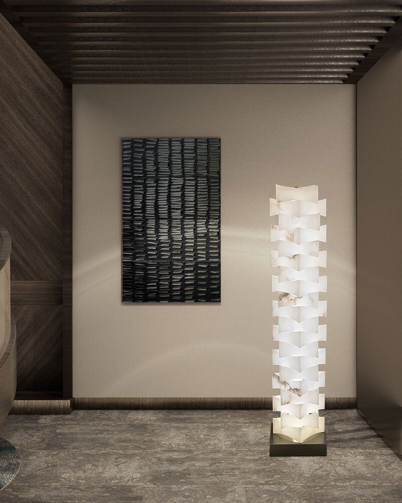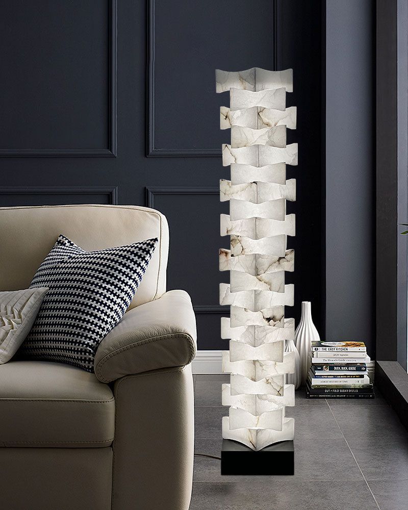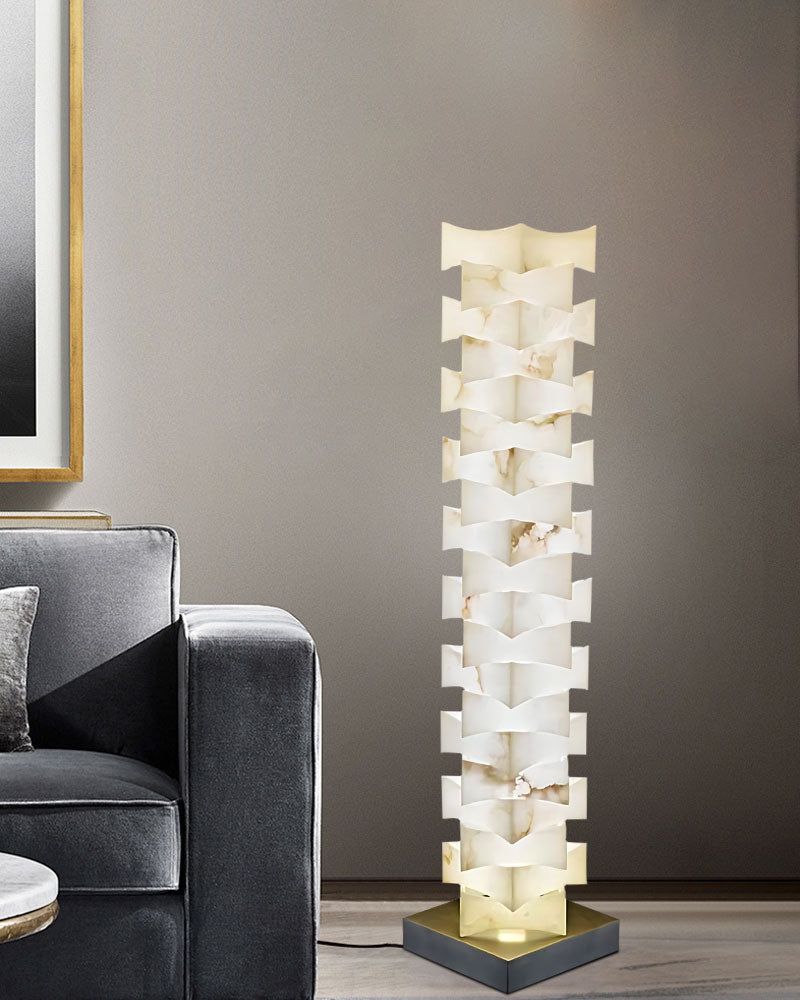 LED Stacked Laminated Square High Floor Lamp with Alabaster Marble shade