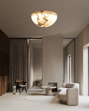 LED Alabaster Semi-Flush Ceiling Light with Round Bowl in brushed brass for living room, hallway
