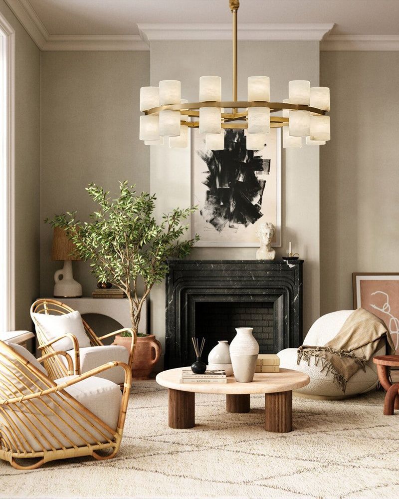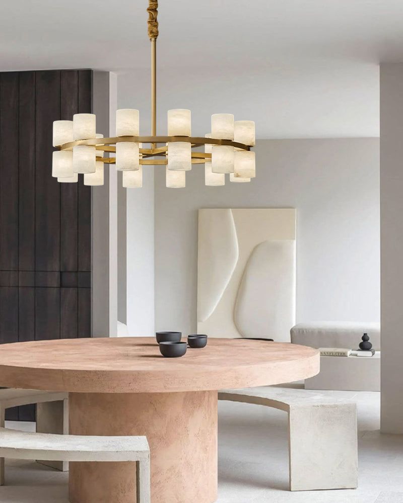 LED Brass Round Alabaster Chandelier for living room & 20/24/28/32/40-lights