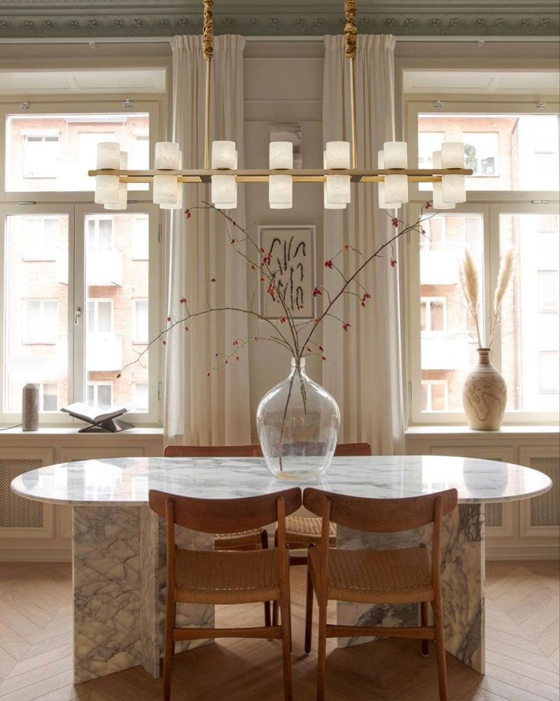 Home LED Brass Round Alabaster Chandelier for living room & 20/24/28/32/40-lights