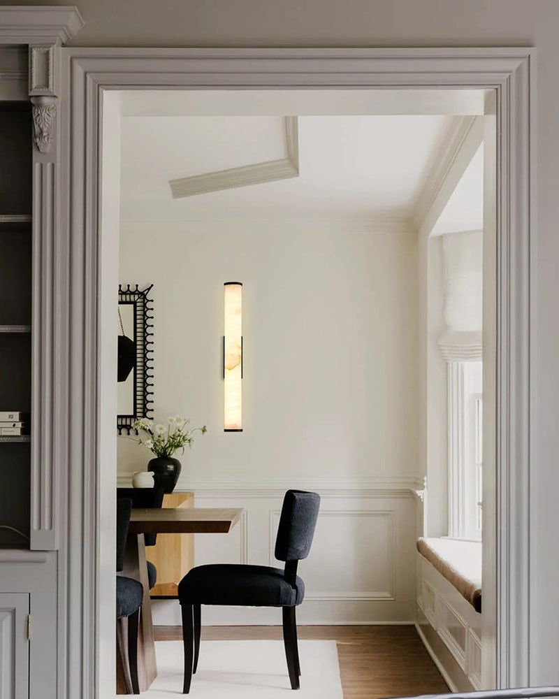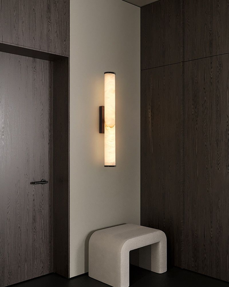 LED Copper Cylindrical Natural Marble Alabaster Wall Sconce Lamp,H30/40/50/60CM