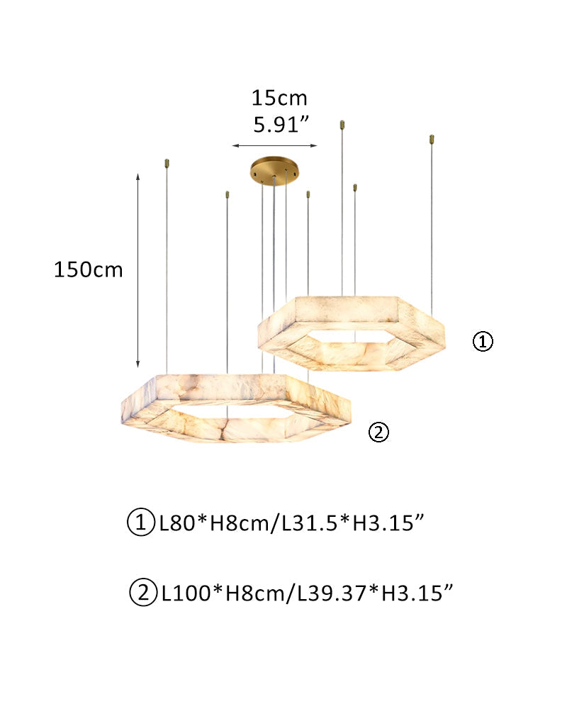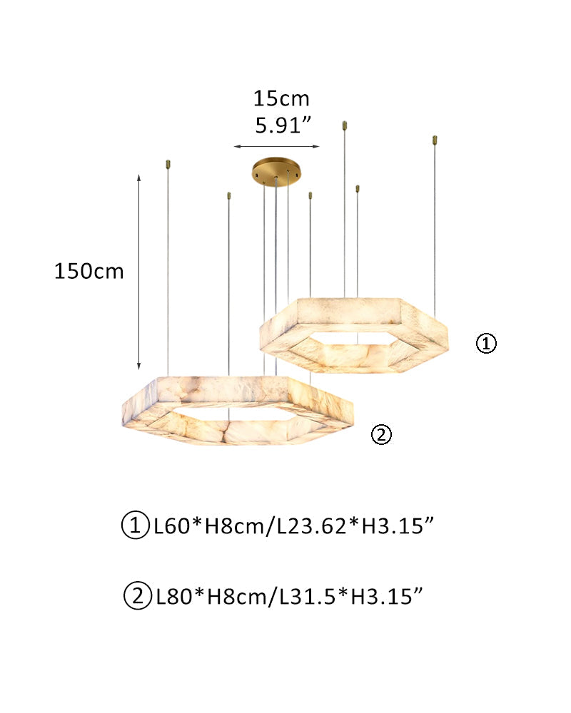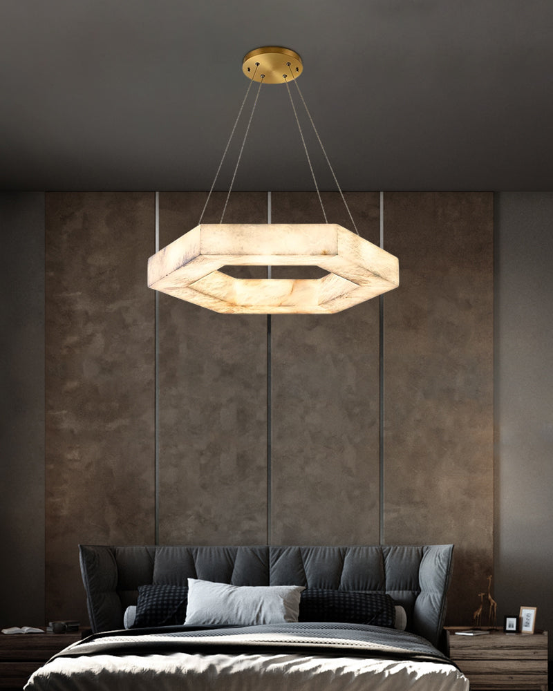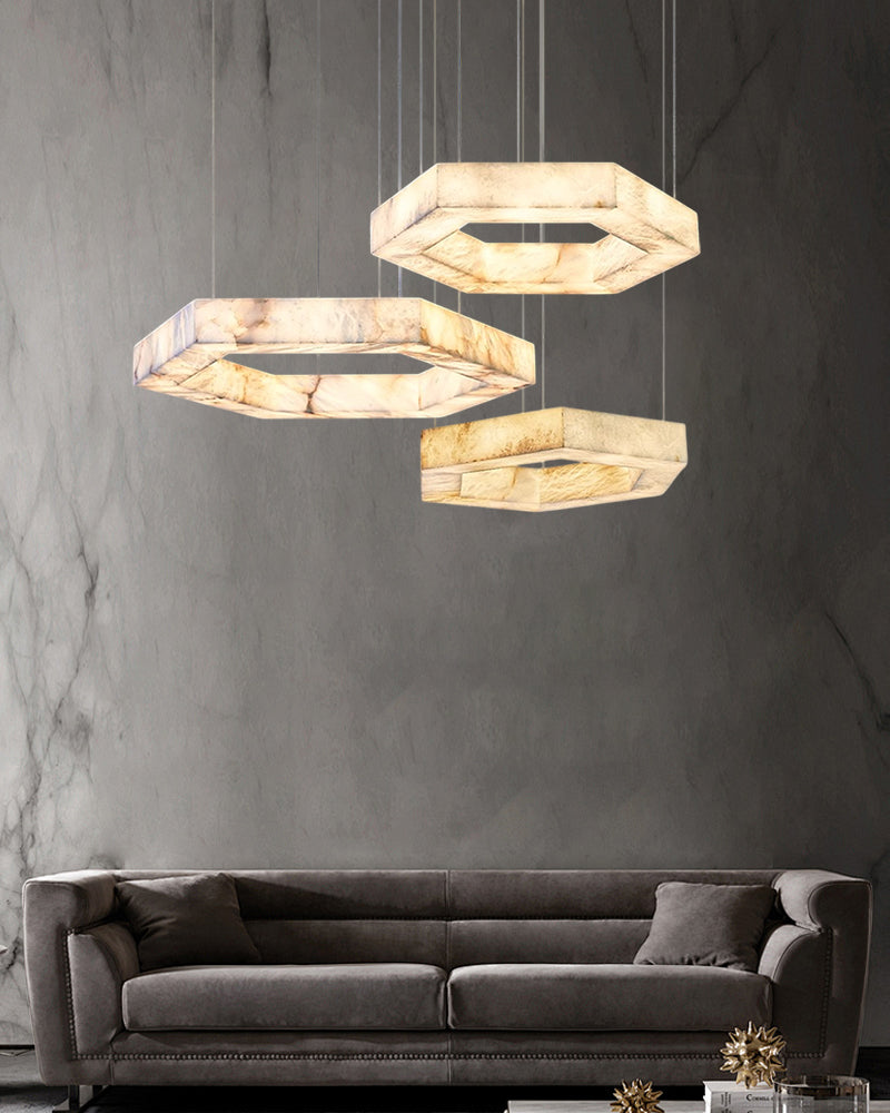 LED Hexagon Marble Pendant Lamp | Double/Triple Ring Design