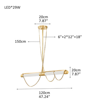 LED Tubular Alabaster Shades Ceiling Pendant Lamp 49" with long chains | Brass