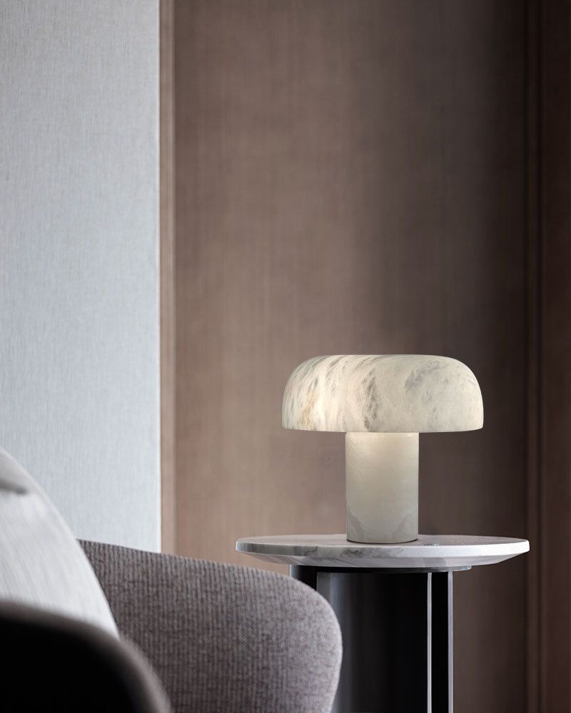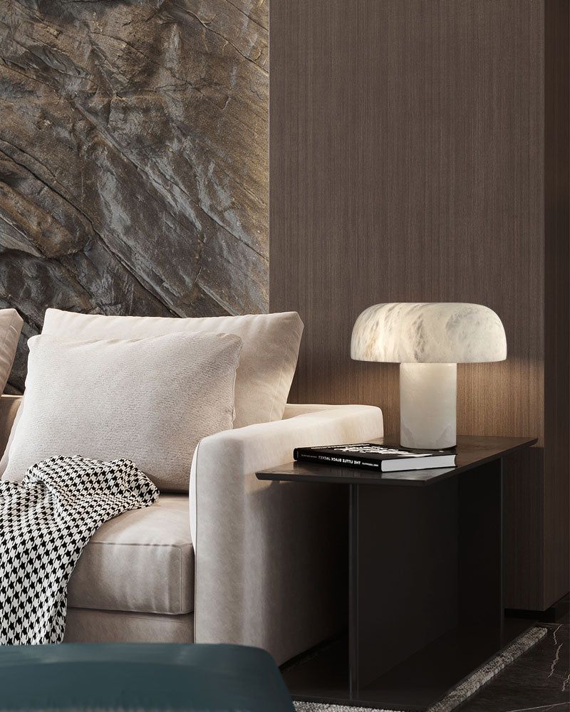 Modern Alabaster Mushroom Bedside Table Lamp Warm White Indoor Lighting
