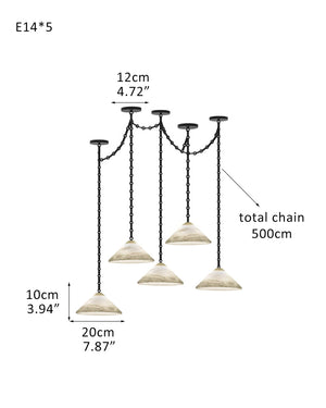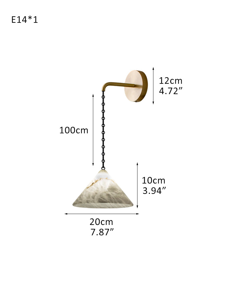Medium 12" Conical Pendant White Alabaster Shade with Brass Chain for living room
