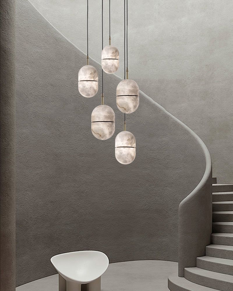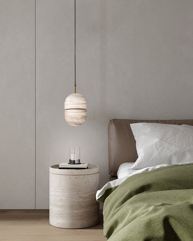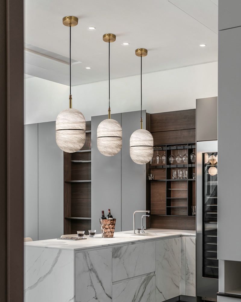 Minimalism G9 Alabaster Pendant Light white marble shade hanging for home decoration