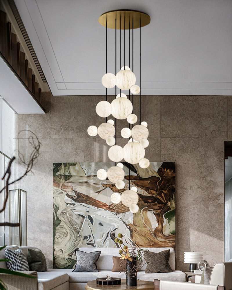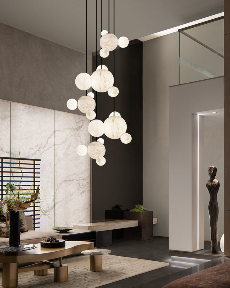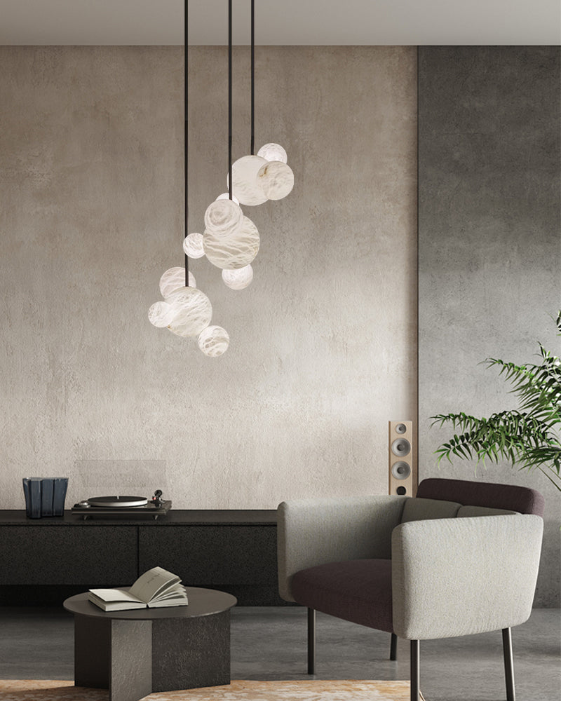 Minimalist Antique Alabaster Cluster Pendant Light Fixtures 6" Wide | Adjustable Cord