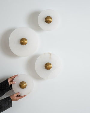Modern Brass Hardwared Round Alabaster Conbination Plug-in Wall Lamp 10" Wide