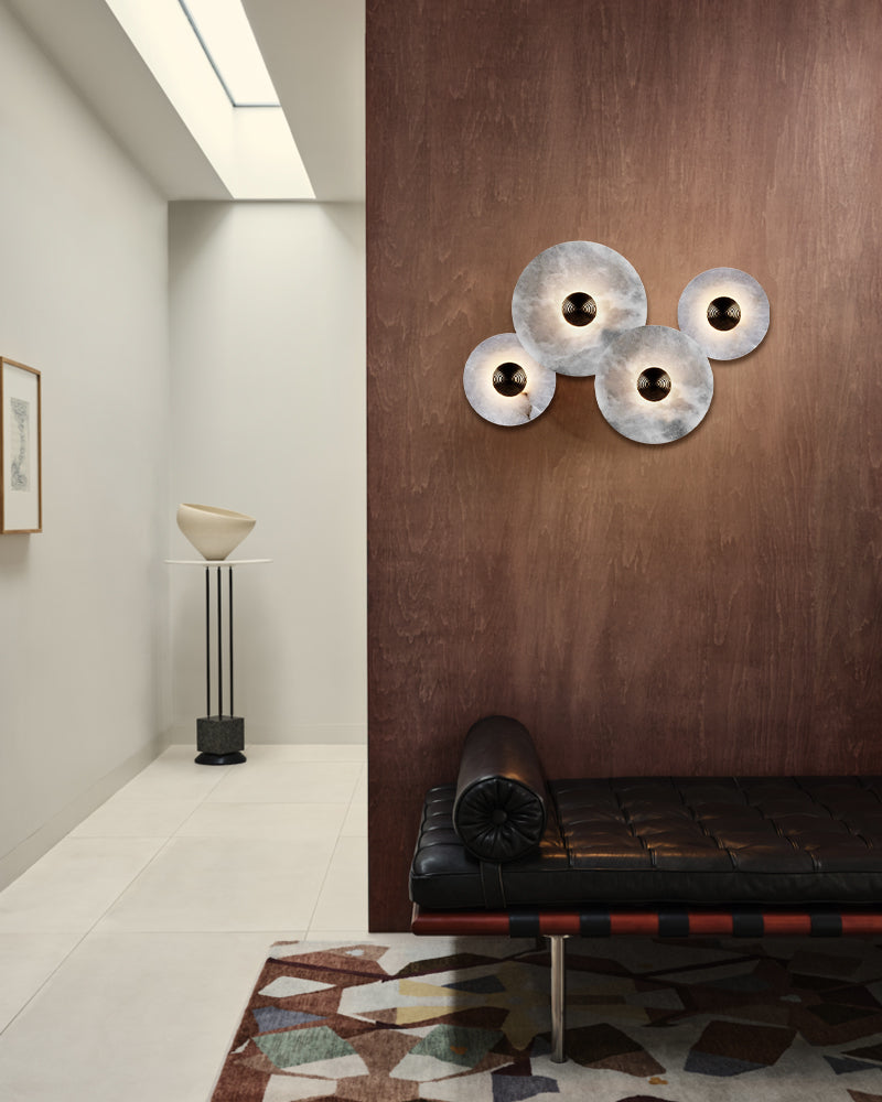 - Hidden LEDs cast a serene, diffuse light through the luminous alabaster stone.