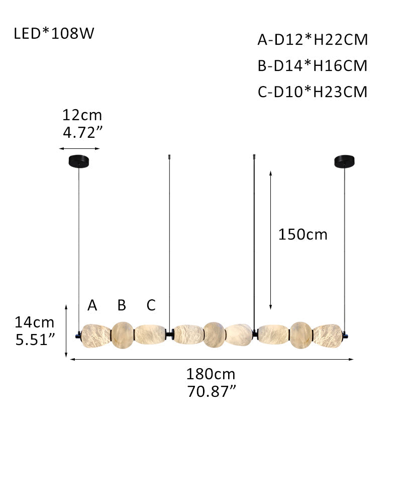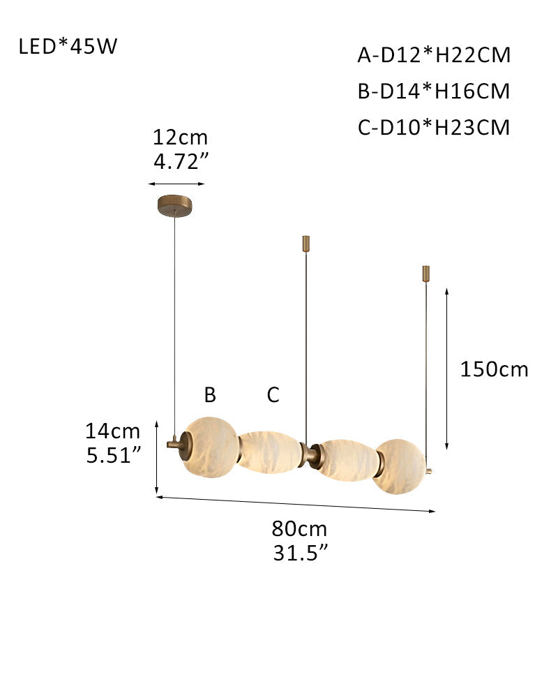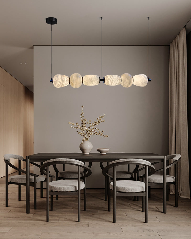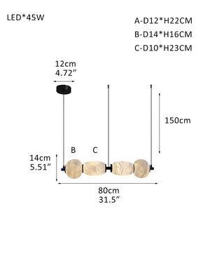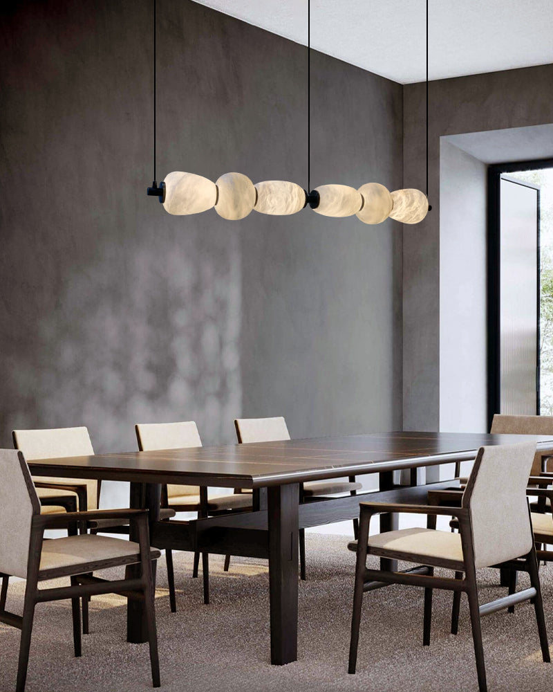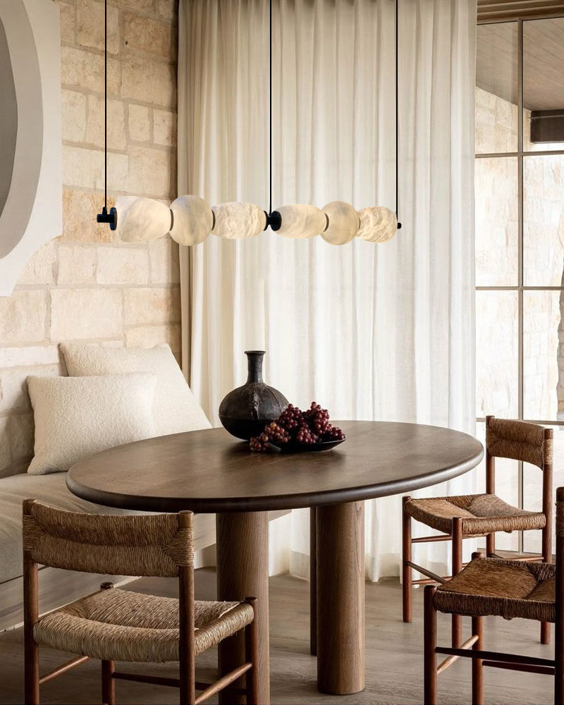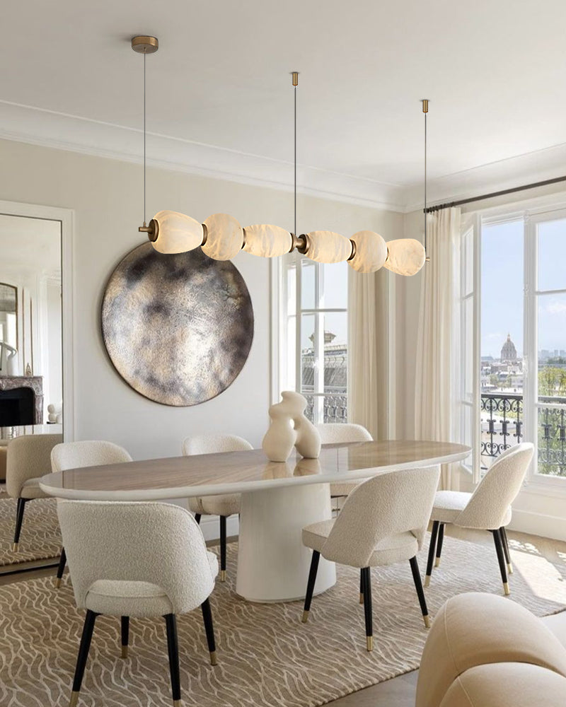 Modern Linear White Alabaster Solid Ball Thread Synthetic Shade Hanging Light for Dining
