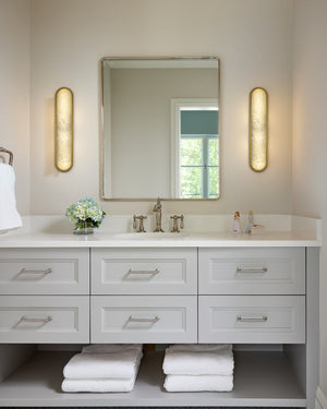 - Natural alabaster shade with soft light refraction for a warm glow.