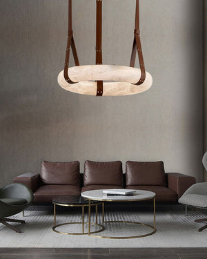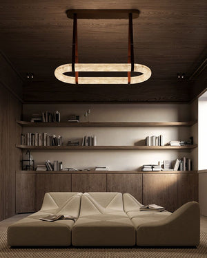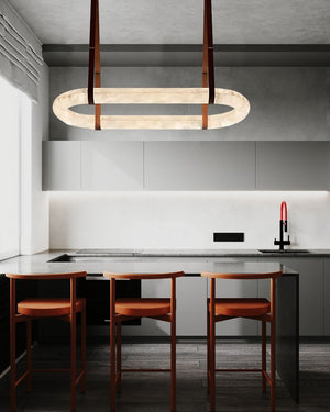 Modern Oval Alabaster LED Lacther Pendant Light Wide 32" 40" 48" for living room