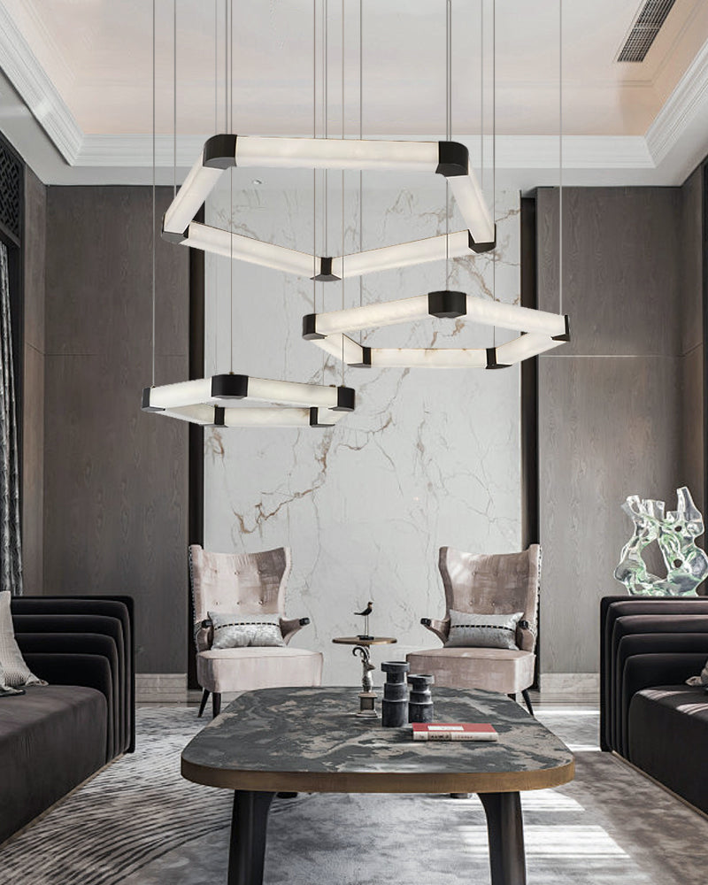 Home Modern polygonal chandelier high-end alabaster Modular chandelier for stainless lobbies