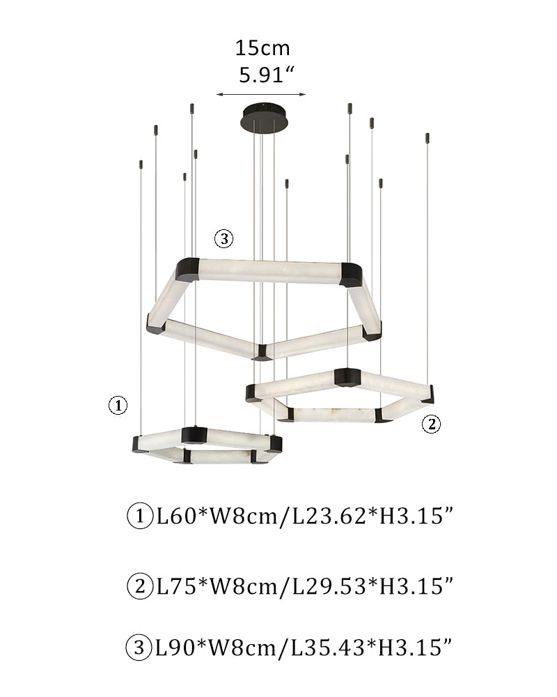Modern polygonal chandelier high-end alabaster Modular chandelier for stainless lobbies