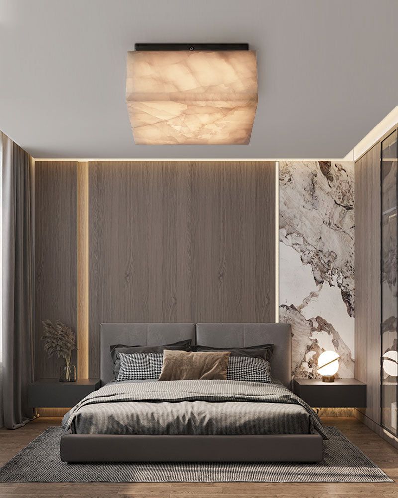 - Natural Material: Translucent calcite/alabaster stone with warm veining.