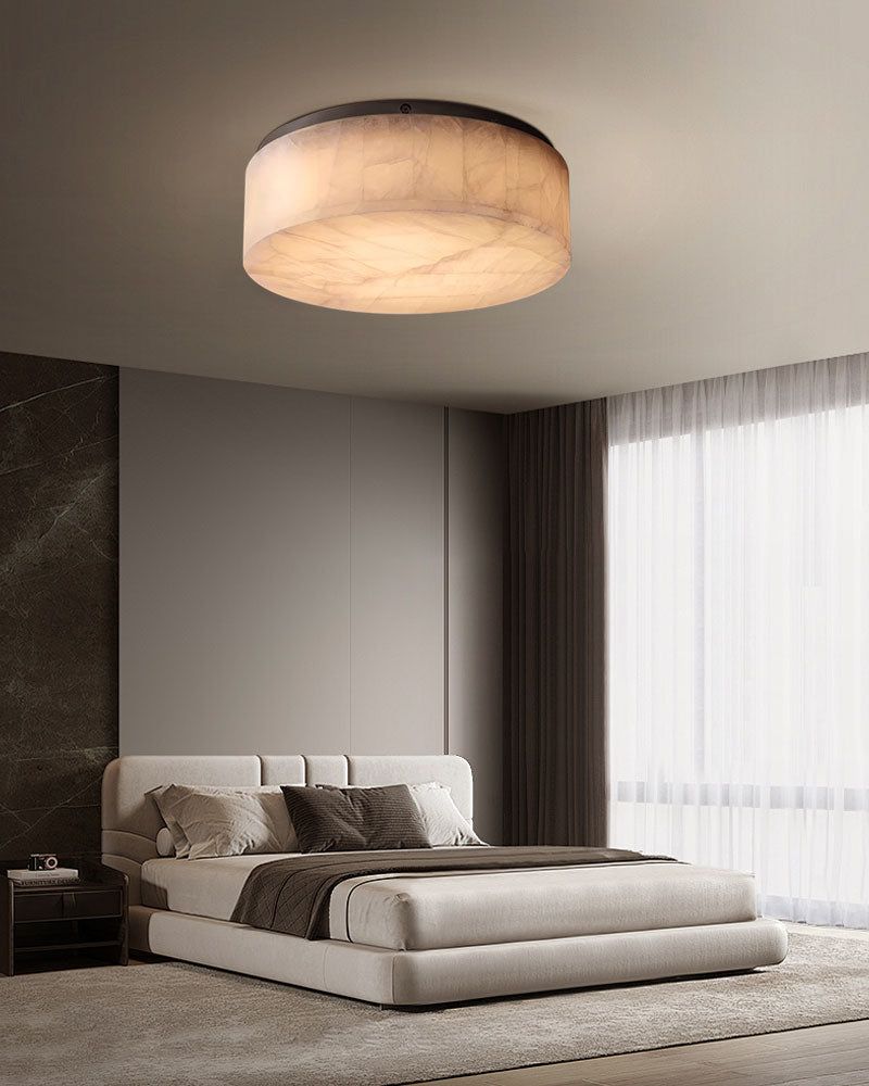 Modern Round Alabaster Ceiling Lights Brushed Brass/Black Dome Plate for bedroom