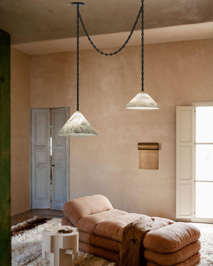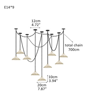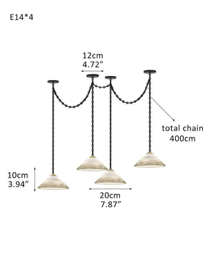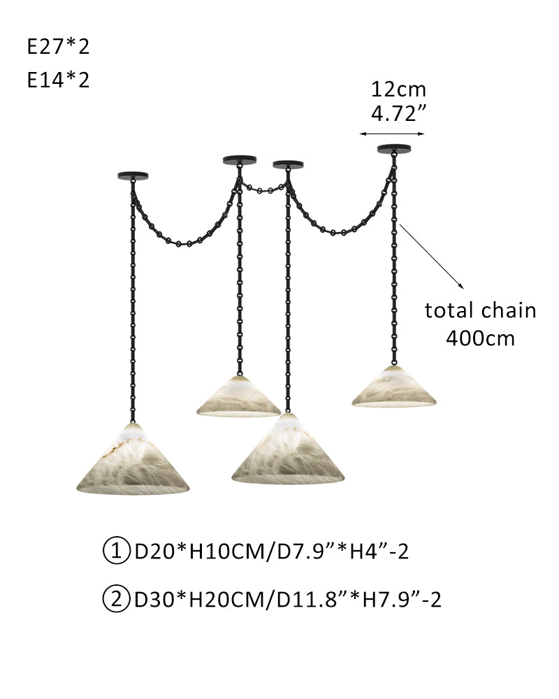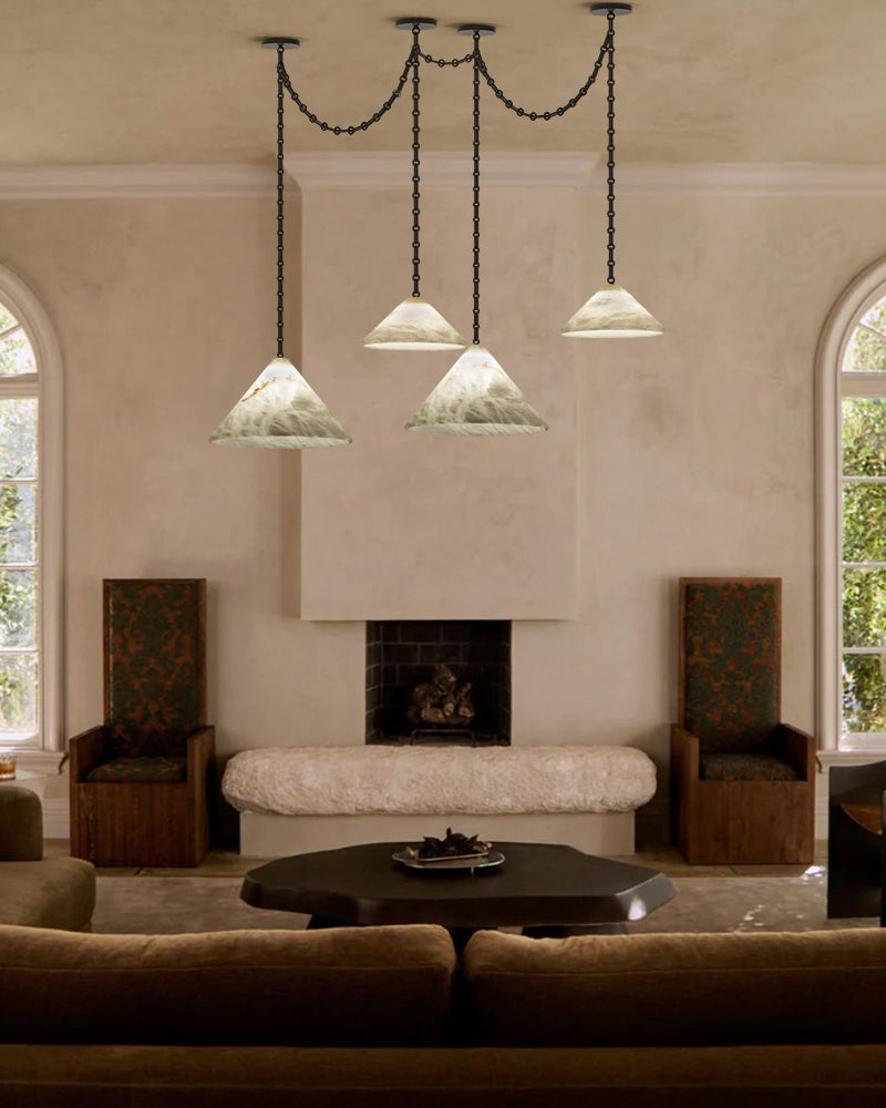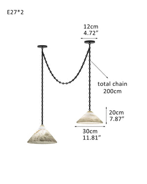 Multi-Head Matte White Alabaster Cone Hanging Kitchen Pendant Light 8" Wide | Black Chain