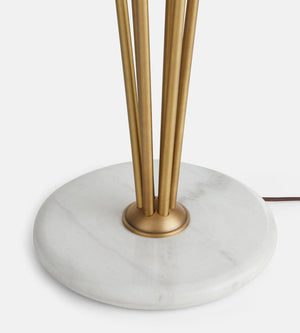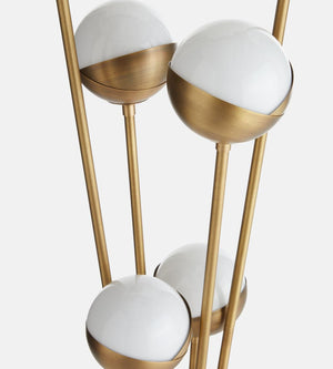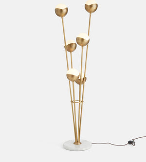 The lighting schemes in White City House and 180 House formed the inspiration for our Seed floor lamp, which features a cluster of bisected orbs connected to a solid brass frame. Also known as raw or uncoated brass, ours is brushed to give the lamp its antique aesthetic, and is left without a protective coating. It therefore ages over time and develops a beautiful patina that adds character to new and old homes alike. Grounded by a honed Italian marble base, this floor lamp serves as a versatile lighting option for both narrow hallways and expansive living areas.
