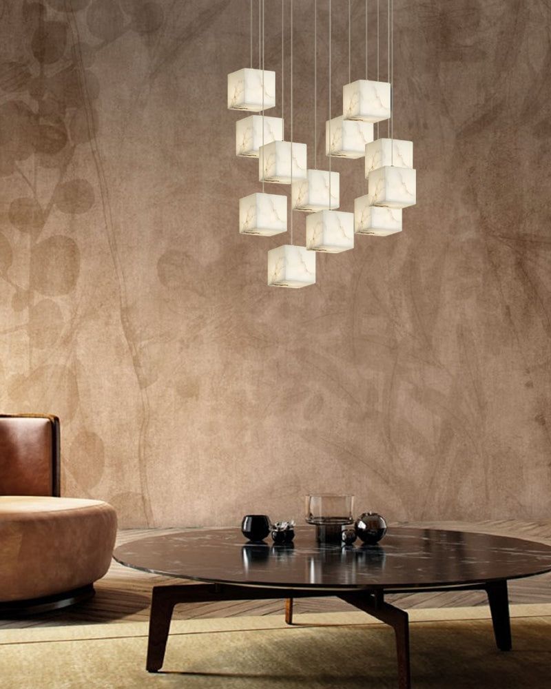 Square Cube Designer Lighting 5inch Nature Stone Alabaster Chandelier for Living room