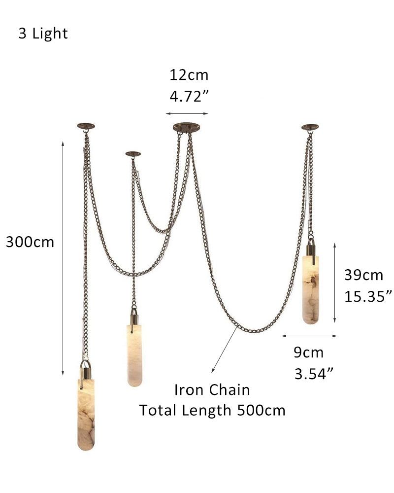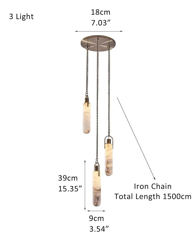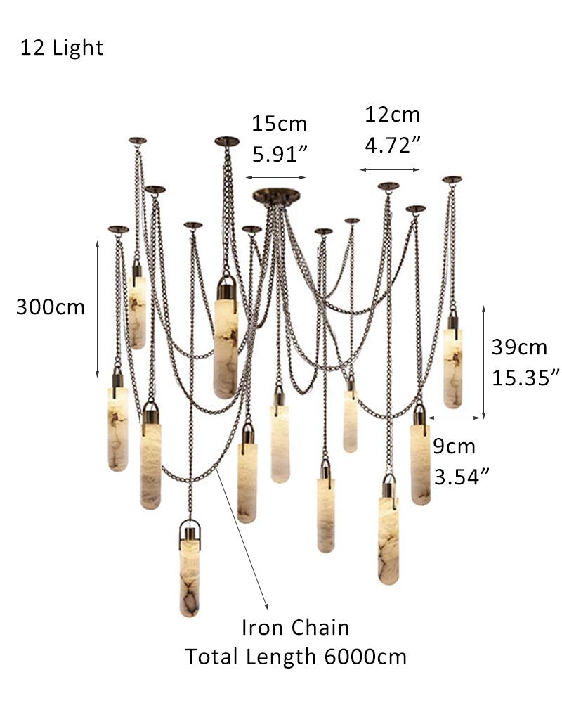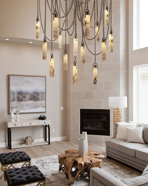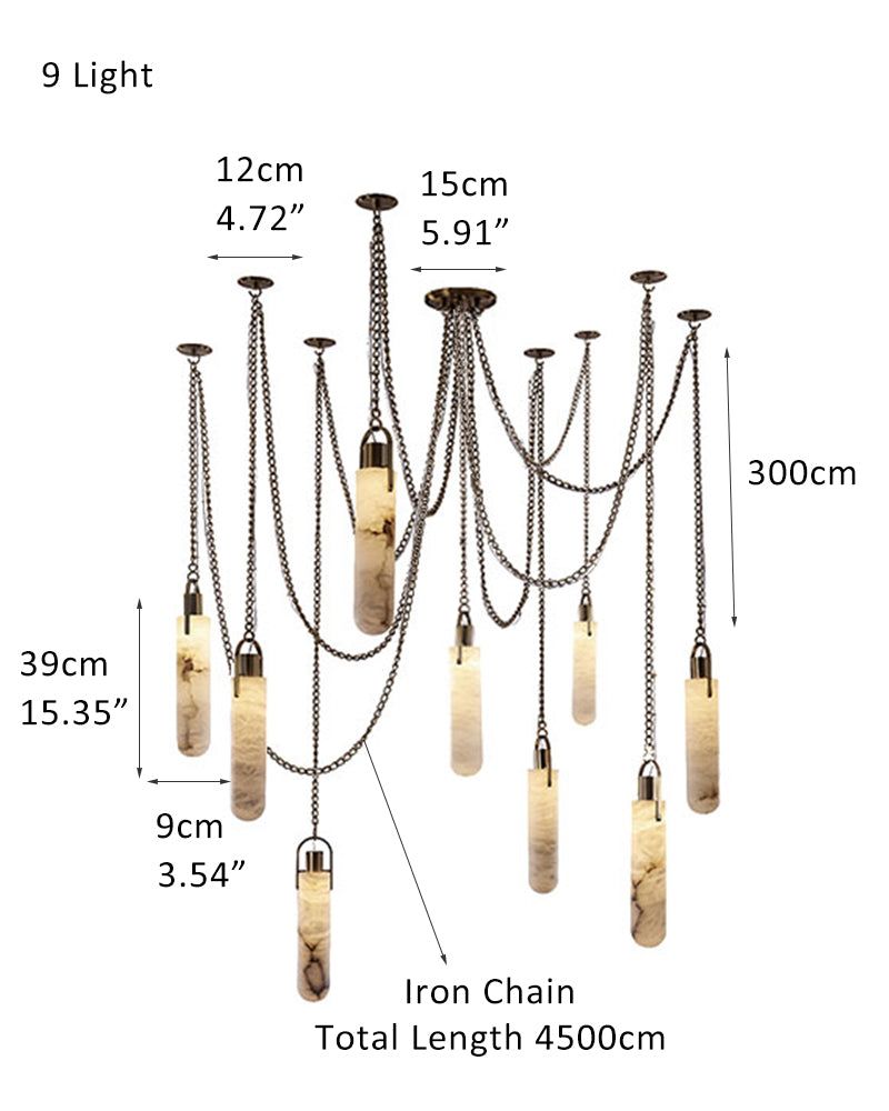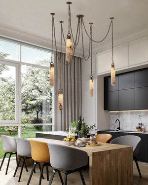 Unique & Modern Multi-Drop Alabaster Pendant Light in aged brass chain 150cm